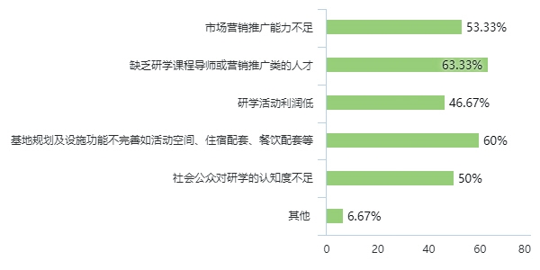 3.接待能力:岛内研学基地接待能力和状况良好,而岛外团体占总接待量不到10%的基地有半数,岛外联动不足,仍需继续开拓岛外市场。