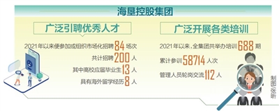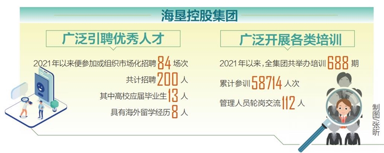 据介绍,海垦控股集团持续加大市场化选聘力度,积极参加省里组织的招聘会,通过智联招聘、海招网等知名招聘平台面向全国发布重要职位,依托“青苗计划”面向全国高校公开招聘管理培训生,广泛引聘各类优秀人才,仅2021年以来便参加或组织市场化招聘84场次,共计招聘200人,其中高校应届毕业生13人,具有海外留学经历8人。