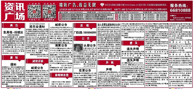 8803202758于2016年10月27号与龙华区房屋征收局签订(海口市龙华区坡博坡巷片区棚户区(城中村)改造项目房屋征收货币化安置协议)(档案编号H-155)不慎遗失,现声明作废。 声明人:黄鹏,黄翔