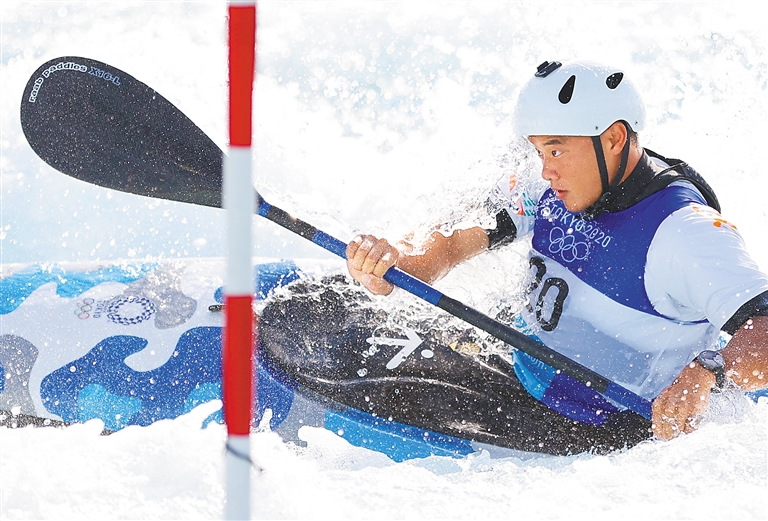 中国皮划艇激流回旋队队员全鑫在训练中。