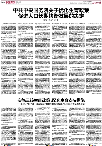 ~~~——解读《中共中央 国务院关于优化生育政策促进人口长期均衡发展的决定》