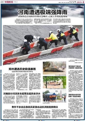 河南遭遇极端强降雨
