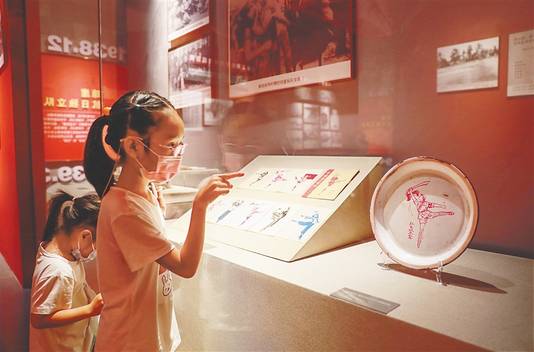 7月21日,海南省博物馆,游客在参观“二十三年红旗不倒——琼崖纵队文物史料展”。