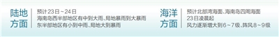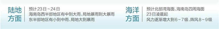 受今年第7号台风“查帕卡”影响,7月22日至7月24日,我省陆地和近海将有较强风雨天气,北部湾海面和本岛四周海面,风力逐渐增大到6级至7级、阵风8级至9级;西半部地区有中到大雨、局地暴雨到大暴雨;东半部地区有小到中雨、局地大到暴雨。