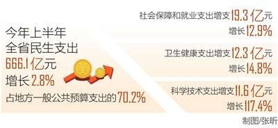 翻看我省财政“账单”中的支出方面,今年上半年,全省地方一般公共预算支出949.49亿元,增支108.8亿元,增长12.9%,较2019年增长10.9%,支出进度比上年同期快4.7个百分点。