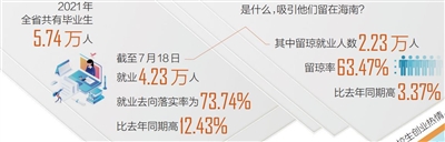 “就业在海南、追梦在海南”,在海南高校已就业的2021届毕业生中,与王鸿浩做出同样选择的超过半数。
