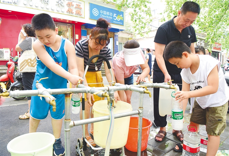 近日,河南郑州出现持续强降水天气,造成市区严重内涝。目前,救援工作有序开展,市民生活逐步恢复正常。图为7月22日,市民在郑州市经七路临时取水点接水。 新华社记者 朱祥 摄