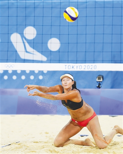 7月22日,中国女子沙滩排球队队员王凡在训练中。