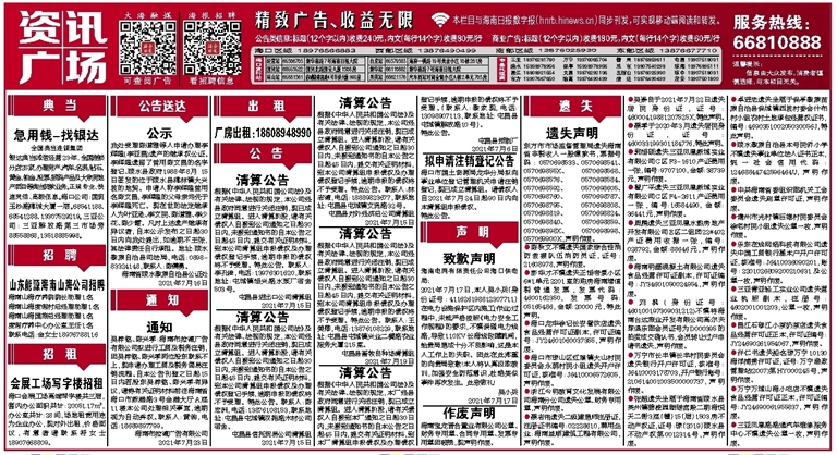 吴梓铭、陈兴孝:海南布拉德广告有限公司拟进行工商及税务注销,因吴梓铭、陈兴孝两位股东联系不上,现申请办理工商及税务简易注销流程。自本公告刊登之日起15日内若股东吴梓铭、陈兴孝有异议请持有关证明材料前往海南省海口市新港路3号金港大厅A座11楼本公司处理相关事宜,逾期视为自动弃权。联系人:黄驹,电话:18689897799