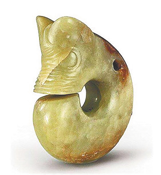 玉猪龙是我国古代对发现于红山等地的一种玉器的称呼,又名玉兽玦。被认为是龙的最早雏形。图为红山文化时期文物,辽宁省朝阳市建平县采集。现收藏辽宁省博物馆。