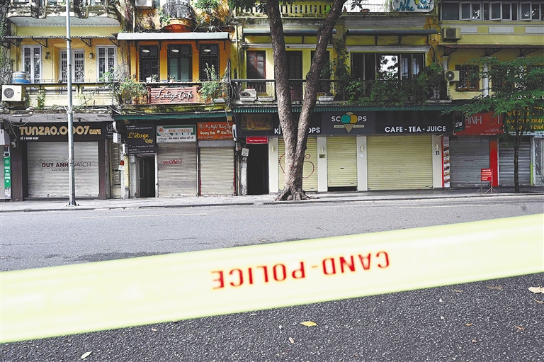 7月24日,越南河内街头的餐馆和商店大门紧闭。