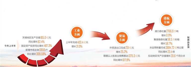 今年上半年,洋浦各项主要经济指标亮眼,其中地区生产总值185.0亿元,同比增长62.4%;固定资产投资同比增长487.3%。两项主要经济指标增速在全省名列前茅。