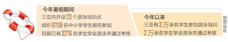 三亚市教育局有关负责人介绍,为全面推进三亚中小学生游泳教育工作,三亚立足实际,积极开展暑期中小学生游泳培训活动。暑假期间,三亚共开设23个游泳培训点为中小学学生进行暑期游泳培训,组织9738名中小学学生报名参加,目前已有3276名学生学会游泳并通过考核。