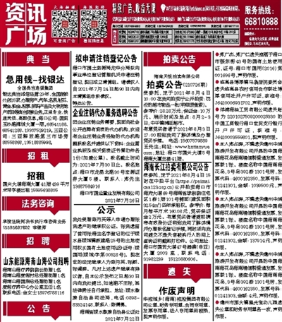 因企业注销业务需要,现面向社会公开选聘有资质的代办机构,欢迎有企业注销业务经验的代办机构踊跃报名并提供以下资料:企业营业执照及相关资质证书复印件各1份(加盖公章)。报名截止时间为:2021年7月30日止。报名地点:海口市龙昆北路30号宏源证券大厦5楼。联系人:郑先生 13687584916