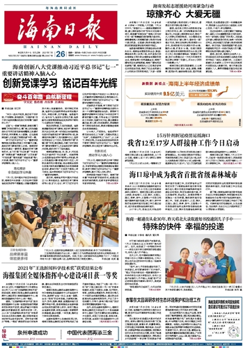 | 海南日报 头版 001 2021-07-261 2021年07月26日 星期一 |
