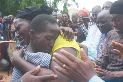 7月25日,获得释放的学生在尼日利亚卡杜纳州与家人团聚。