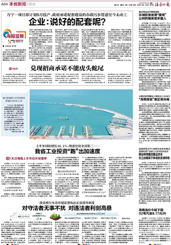 万宁一项目原计划8月投产,政府承诺配套建设的市政污水管道至今未动工~~~