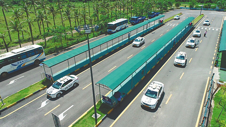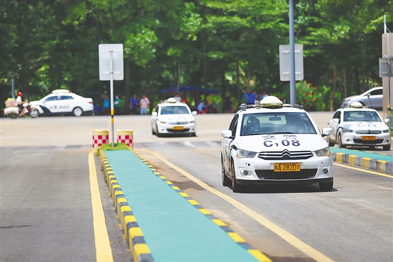 近日,在海口市机动车驾驶人科目三考场,学员在进行车考。