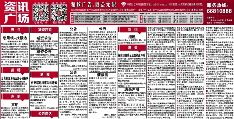 ●麦孙海遗失位于万宁市万城镇水边村委会14小组的海南省乡村建设规划许可证,证号:乡字第(2021)0328号,声明作废。