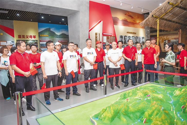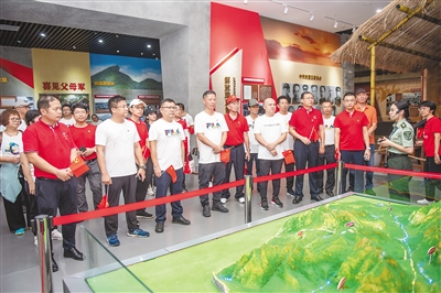 近日,中国农业银行琼海市支行与海口江东分行、五指山市支行联合举行党日活动,图为党员干部在五指山革命根据地观看海南少数民族革命斗争史展览。特约记者 蒙钟德 摄