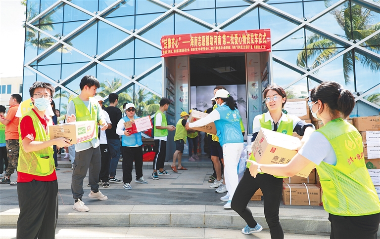 7月28日,“琼豫齐心——海南志愿援助河南爱心捐助紧急行动”第二批救援物资从海口发车,将运抵河南受灾地区。志愿者在海口市新埠岛将医疗物资装上发往河南周口的货车。截至7月28日中午,该行动共募集并捐助善款超过81万元。