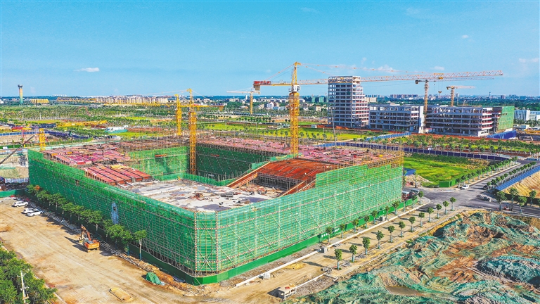 近日,俯瞰位于海口江东新区的大唐国际贸易中心项目。目前,该项目已开始地上主体结构施工。