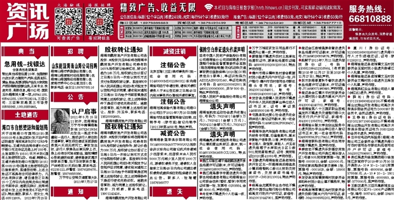 韩美仙、王德夫向我局申请补办位于海口市龙华区龙昆上村158号,土地面积为108.91平方米的《国有土地使用权证》。经查,韩美仙、王德夫持有的海口市国用(2015)第008315号《国有土地使用权证》已登报挂失,现通告注销,上述土地证不再具有任何法律效力。凡对此有异议者,请自通告之日起15个工作日内向我局龙华分局提出书面申诉;逾期无异议,我局将依法补发上述宗地的《不动产权证》。特此通告。联系人:吉女士,电话:68512605。 2021年7月23日