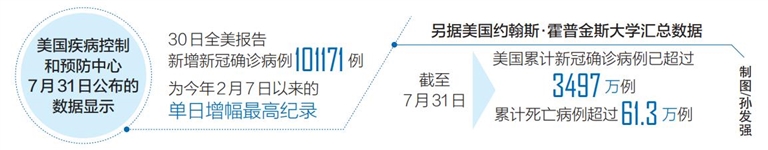 专家认为,近期美国新冠病例激增与高传染性的新冠变异病毒德尔塔毒株加速传播、仍有许多人未接种疫苗等因素有关。