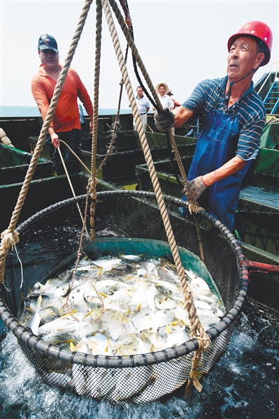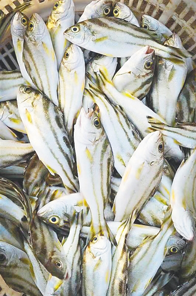 黄海说,从外观上来看,军曹鱼体形圆扁、躯干粗大、头平扁而宽,背部褐色、侧部浅褐色,腹部白色,是常见海水网箱养殖品种。军曹鱼为肉食性鱼类,肉质细嫩、鲜美,香煎或者煮汤都很美味,也是作为生鱼片的上好材料。由于它生长速度快,经济价值高,现已成为我国南方沿海一带的重要深海网箱水养殖品种。马鲛鱼肉多刺少,肉嫩味美,尤其是每年清明前后是马鲛鱼产卵的时节,此时鱼体最肥,滋味尤为鲜美。“这三种鱼都有肉多刺少,肉嫩味美的共同特点,颇受渔民的喜爱。”