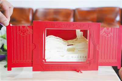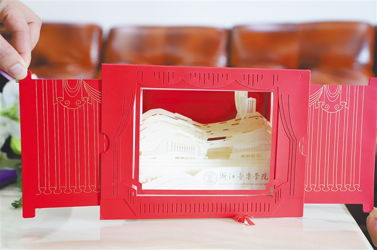 记者看到,浙江音乐学院的录取通知书以典雅红色为底色,封面写着校训“事必尽善”。通知书是立体设计的,打开时就如同剧院的大幕缓缓拉开,将古典和趣味元素相互融合。“设计得太精美了,简直就是艺术品!”吴杏芸忍不住赞叹道。