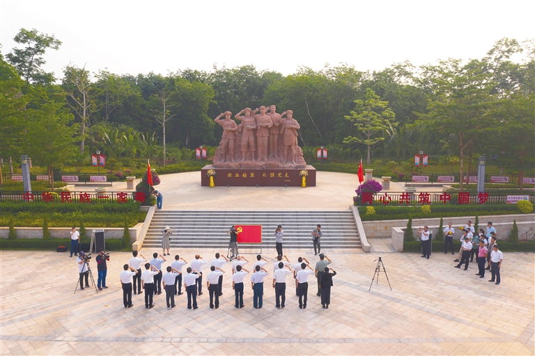 用好儋州市本地红色文化资源和党史教育基地,开展现场体验教学。儋州市对歃血结盟纪念园、光村镇泊潮村农村党支部成立旧址等一批党史教育基地升级修缮,挖掘红色文化内涵,打造党史学习教育体验教学场所。全市各级党组织在清明、“五四”“七一”等时节,组织人员到党史教育基地,重温入党誓词,开展现场体验教学400余场次,参加人员4万余人次。4月2日,儋州市市级领导干部“清明祭英烈,永远跟党走”活动在歃血结盟纪念园举行,参加活动人员重温入党誓词,向革命先辈敬献鲜花,瞻仰“歃血结盟,永跟党走”纪念塑像。