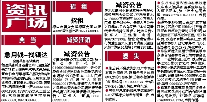 银达典当诚信经营23年,全国连锁分店25家,办理房产、汽车、名表、钻石、黄金、铂金、股票、数码产品及大宗房地产项目等典当贷款业务。正规专业、快速灵活、高额低息。海口公司:国贸玉沙路椰城大厦一层。68541188、68541288、13307529219。三亚公司:三亚解放路第三市场旁 88558868,13518885998。