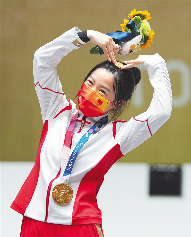 出生于千禧年的杨倩在决赛最后一枪时完成逆转,摘得了东京奥运会首枚金牌。颁奖仪式上,她双手举过头顶比心的形象被印在千万中国体育迷的记忆里。