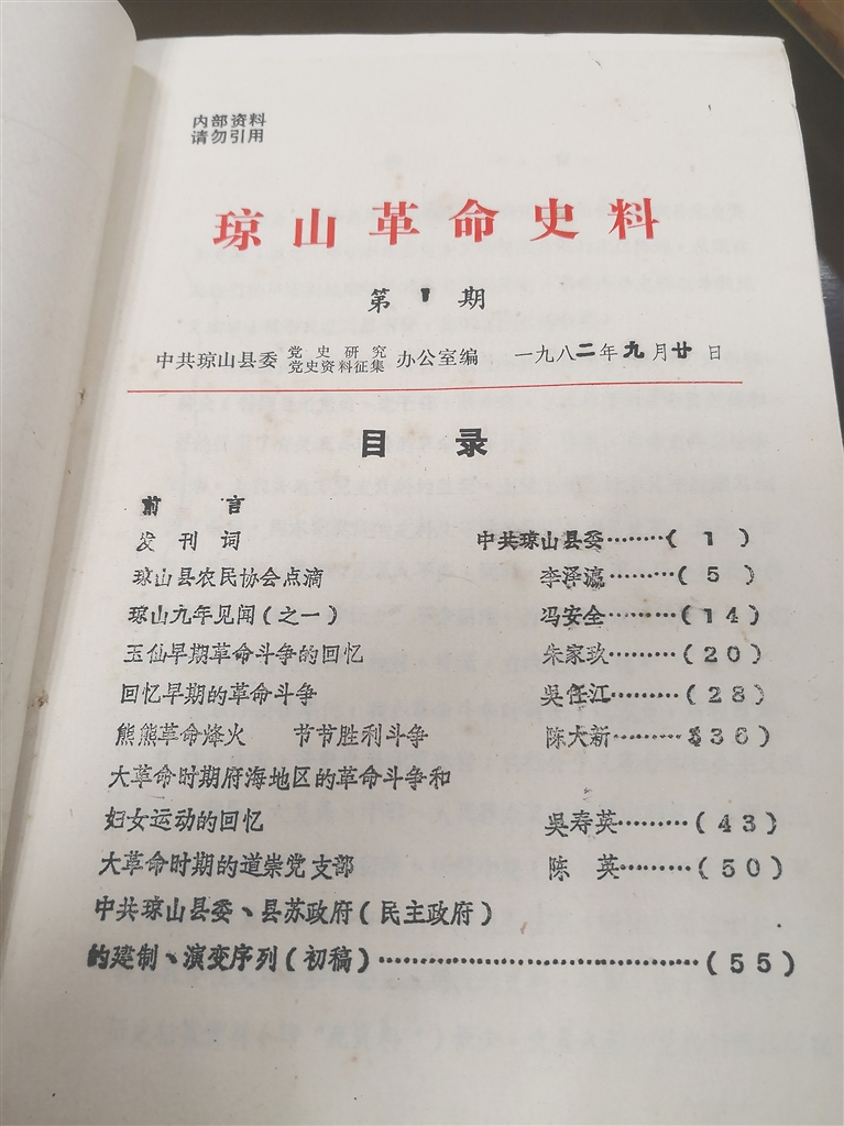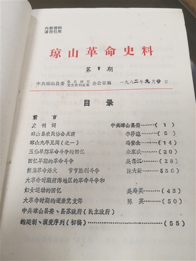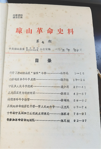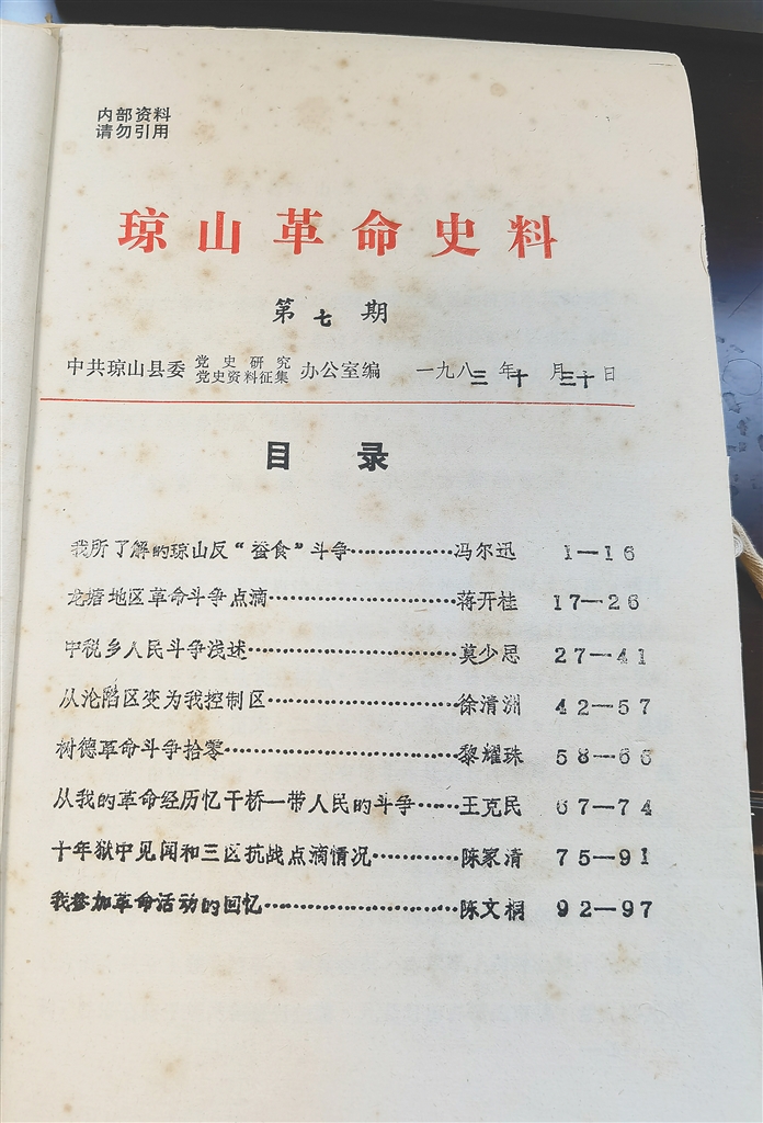 《琼山革命史料》是20世纪80年代,由中共琼山县委党史研究办、党史资料征集办公室编纂的一本党史史料丛刊。全刊共12期,共70多万字,第1期发行于1982年9月20日,距现在已经近40年了。这本丛刊不仅是一份珍贵的琼崖革命史料,更是一代海南党史工作者艰辛工作的见证。