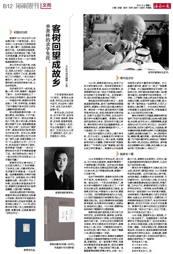 今年是季羡林诞辰110周年。季羡林出身贫寒,早年在山东省立高中读书,毕业后考入清华大学,后来又放洋海外,留德十年。