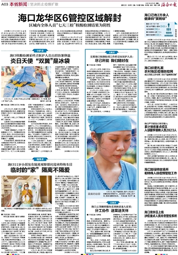 | 海南日报 本省新闻 坚决防止疫情扩散 003 2021-08-091 2021年08月09日 星期一 |