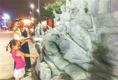 8月8日,在海南省史志馆前的红领巾广场,庆祝中国共产党成立100周年红色主题雕塑作品展吸引市民游客驻足观赏。本报记者 张茂 摄
