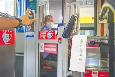 据悉,海口公交通过张贴提示语,引导乘客主动亮码。司乘人员在查验健康码过程中,绿码方可乘车,黄码和红码禁止乘车。