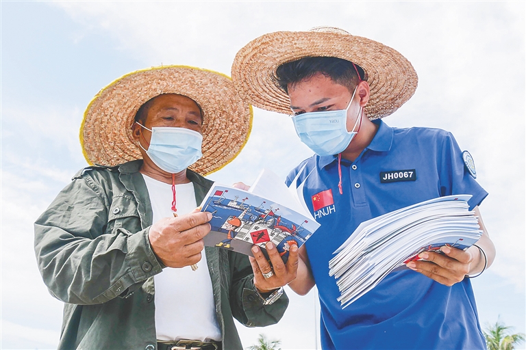 8月12日,省渔业监察总队组织工作人员和志愿者走进儋州白马井中心渔港、新英渔港和临高调楼渔港开展渔业安全生产宣传,以强化渔民的安全生产责任意识。