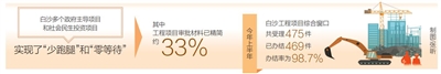 “以前,要实现项目开工,得跑四五个部门,准备一大摞材料,现在都是‘一窗受理、一窗办结’。各阶段可以并联审批,相同的材料无需重复提供,效率很高。”白沙大溪地商业街项目前期负责人徐尧介绍,自该项目启动以来,白沙行政审批服务局工程建设项目审批服务专班还安排工作人员为企业提供“一对一”审批全过程服务,施工得以提速。