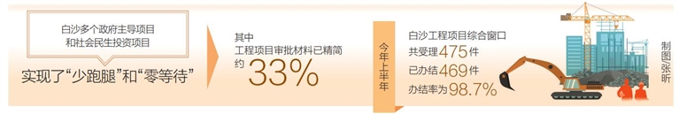 统计数据显示,今年上半年,白沙工程项目综合窗口共受理475件,已办结469件,办结率为98.7%。下一步,白沙有关部门将持续深化“我为群众办实事”实践活动,积极探索“拿地即开工”审批模式,实现项目审批“最多跑一次”和“零等待”,加快推进工程建设项目审批制度改革工作,助推白沙项目投资建设实现高质量发展。