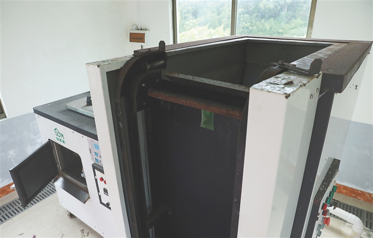“砰”的一声,刘秀娥将手中的垃圾丢进一个绿色垃圾桶里。海南日报记者却发现,在离这个垃圾桶不远处其实有一个垃圾分拣点,一套已经安装好的餐厨垃圾处理设备被闲置。