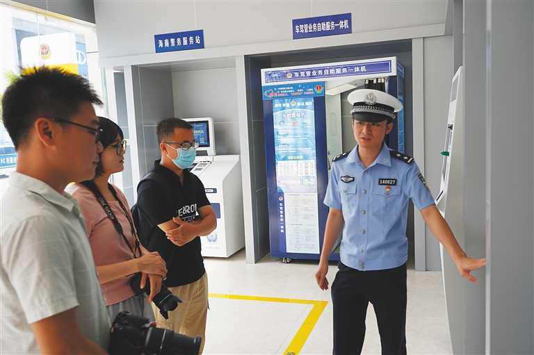 从满足群众的实际需求出发,儋州市公安局结合工作实际推出便民举措。5月10日,设在市公安局东门的市公安政务服务24小时自助办理区正式启动,这是儋州深化公安政务服务“放管服”改革的重要举措,弥补非工作时间服务盲点,真正实现为群众提供“7×24”小时不打烊的全天候政务服务。“24小时自助办理区真是太方便,今天我来换驾驶证、续签港澳通行证,几分钟就办好了。以前有时排队等1天都难以办好。”市民刘晓燕点赞24小时自助办理区真正便民、快捷。24小时自助办理区占地85平方米,安装出入境业务的证件照片自助照相机、通行证自助签注机;车驾管业务自助服务一体机、驾驶人自助体检机、交通违法自助处理机、驾驶证自助制证机;户政业务的二代身份证自助受理机,以及海南警务服务站等便民服务机、业务自助查询机等10台设备。基本实现出入境、户籍、车驾管多警种业务融合、一站式、全天候、人性化的服务功能,具有缩短办理时间、精简办理材料、降低办事成本、减少警力投入和自主选择办证时间的特点。