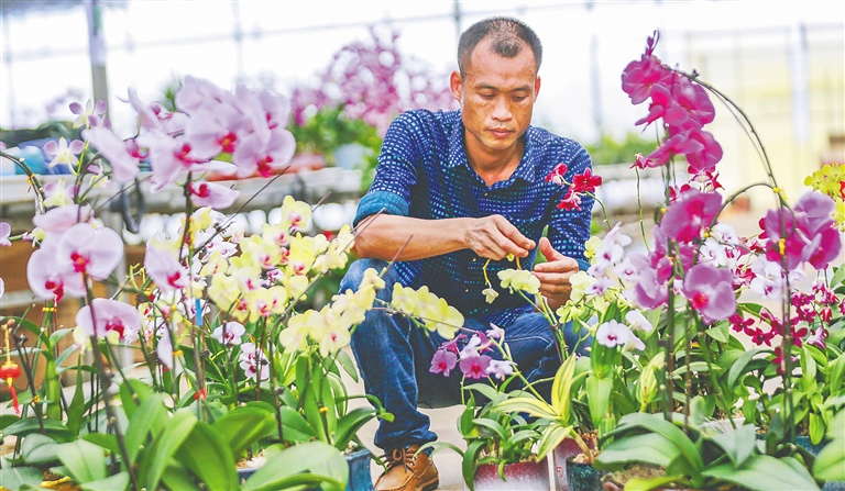 8月13日,在位于昌江乌烈镇道隆村的海南和丰世纪农业开发有限公司花卉基地,村民们在大棚里认真地护理兰花苗。“在这里务工离家近,每月能有3000多元的稳定收入。”道隆村村民杨海望说,她已在基地工作两年多,主要负责兰花的养护及包装等工作。