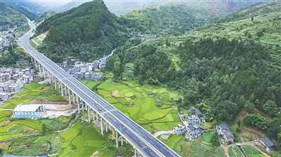 8月15日,车辆行驶在秀印高速公路小湾大桥上(无人机照片)。