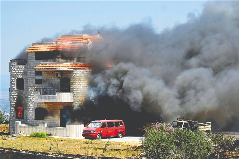 这是8月15日在黎巴嫩阿卡尔拍摄的油罐车爆炸现场。
