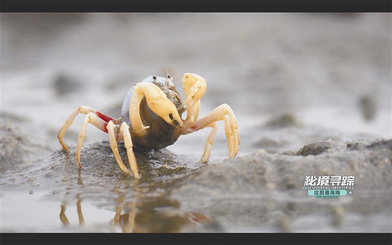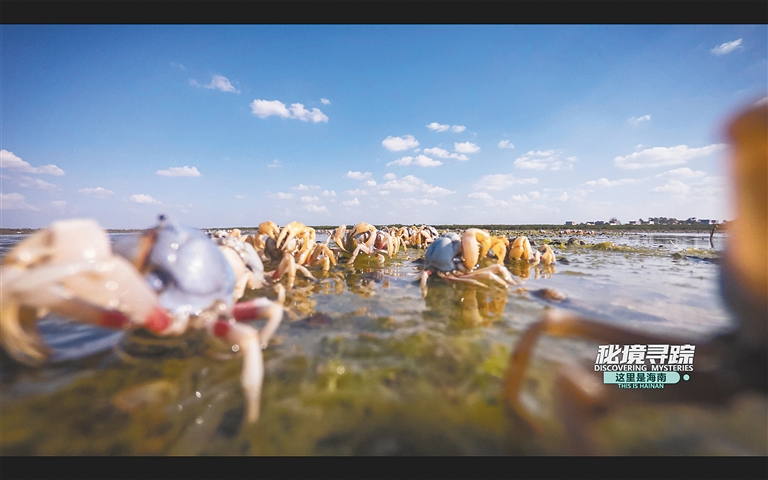 清晨的海南儋州湾湿地,阳光照耀下,滩涂地上散发一层灰黑色的光亮,在这灰黑色的光亮底下,是一片潮湿阴暗的世界,和尚蟹从洞里露头鬼鬼祟祟,弹涂鱼在泥水里蹦跳前行,扎在泥土中的蛤、蛏子缓缓张开壳来透透气……这是《这里是海南:秘境寻踪》第二季第一期中呈现的绝美画面。