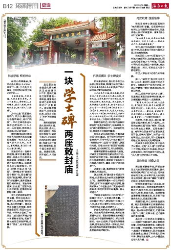 唐宋时期海南昌化县洲润水清,航运活跃,昌化山两次被敕封,苏东坡致祭写下《峻灵王庙记》,此后抗金名将折彦质补撰成碑,残碑今存于原南汉南海神庙,即今昌江峻灵明王庙。其遗存深厚,环环相扣,大可言说。