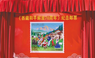 《西藏和平解放70周年》纪念邮票图样(8月16日摄)。