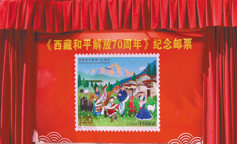 8月16日,中国邮政集团有限公司在拉萨举行纪念邮票发布仪式,定于2021年8月19日发行《西藏和平解放70周年》纪念邮票1套1枚,计划发行数量700万套。新华社发